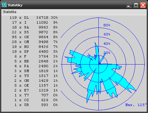Statistika WW: by Atalanta Locator ver. 12.29 SUM of WWL : 78 QSO vs QRB WWL : 32xJO70 22xJN79 17xJN89 15xJO60 14xJO61 13xJN98 ---------------- 12xJN76 11xJN97 11xJN58 10xJN99 10xJN86 9xJO71 < 100 58x 9xJN95 9xJN88 9xJN49 8xJO51 8xJO50 8xJN59 100 - 199 55x 7xJN68 6xJN69 6xJN65 6xJN37 5xJO31 5xJO30 200 - 299 68x 5xJN48 4xJO80 4xJO65 4xJO62 4xJO41 4xJN87 300 - 399 45x 4xJN85 4xJN63 4xJN54 3xJO90 3xJO72 3xJO32 400 - 499 63x 3xJN75 3xJN55 3xJN39 2xKN09 2xJO94 2xJO81 500 - 599 45x 2xJO53 2xJO43 2xJO42 2xJO40 2xJO33 2xJO20 600 - 699 21x 2xJN94 2xJN78 2xJN77 2xJN64 1xKO00 1xKN19 700 - 799 12x 1xKN18 1xKN08 1xKN07 1xKN06 1xKN05 1xKN04 800 - 899 2x 1xJO91 1xJO83 1xJO82 1xJO74 1xJO73 1xJO64 > 899 0x 1xJO22 1xJO21 1xJO10 1xJN96 1xJN66 1xJN57 ---------------- 1xJN47 1xJN44 1xJN38 1xJN36 1xJN34 1xJN19