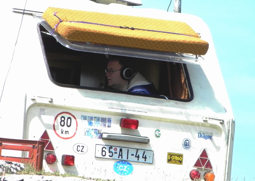 Report z 23cm od Matěje, OK1TEH: Ač Mikrovlnný závod je jeden z mých nejoblíbenějších, dlouho nebylo jasné, jestli se ho tento rok zúčastníme. Někteří (jako já nebo Tomáš) měli povinnosti ke vzdělávacím institucím, jiní museli dát přednost rodinným povinnostem a například OK1BAF spadl týden před závodem ze schodů, čímž si způsobil tříštivou zlomeninu prstů na noze... Naštěstí 2 dny před závodem se podařilo vylákat na Spáleniště Mirka OK1DOM a také Jirku OK7RA, který nám přislíbil pomoci se stavěním 3cm stožáru, TNX! Nakonec jsme se tedy po 300km dlouhé cestě s karavanem z Polabí sešli v pátek ve 23h ve složení: Matěj OK1TEH, Vláďa OK1VPZ, Láďa OK1DIX, Majka OK1DYX, Mirek OK1DOM, Venca OK1XNG a v sobotu ráno přijel na pomoc, a mimo to rovněž rozdat body pod naší značkou na 24/47/76 GHz i Jirka OK7RA - což pro plánovaná pásma 23 a 3cm tedy vydalo na 3 operátory. Počasí bylo naprosto nekrušnohorské v podobě jasné oblohy á la Kodak color s teplotou přes 20 C a hlavně bez hryzajících tiplic :-) V sobotu jsme začali rozvinutím 400m dlouhého kabelu z baráčku na bunkr a ve 2h odpoledne již stály oba stožáry (10m vysoký na 3cm, 7,5m pro 23cm). Zapojování všeho železa proběhlo podle plánu, jenom ze začátku nefungovalo točení 3cm stožáru přes VUSC, ale záhy se podařilo identifikovat vylomený konektor a tak již 2h před začátkem jsme byli připraveni, dokonce jsme zprovoznili i PLC, aby se dalo o 400m dále v baráčku podívat na internet.. Použité zařízení stále stejné s jedinou výjimkou v podobě nově nainstalovaného cirkulátoru na výstupu menšího 23cm PA. Do jednoho směru tak šlo maximálně 330W, do druhého 120W, k anténě 7m dlouhý 1/2" + 2m pružná spojka, LNA 0,8dB NF stále jen dole v karavanu. Větší konec by uměl dát i přes 400W, ale chybí dostatek buzení, protože h.m. transvertor rok výroby 1995 již dosluhuje. Na 3cm 60cm parabola s kdoví proč špatným SWR a naměřeným výkonem na přírubě vlnovodu 3W.. Začátek závodu začal několika přestávkami, protože na elektřinu karavanu byl připojený pro 24 GHz i Jirka OK7RA a prolamování elektriky k 150V ho příliš nepotěšilo, takže jsem pro mikrovlnná QSO musel na 23cm pauzírovat. Byly to trochu nervy, vlevo pobíhá Jirka, vpravo zase probíhala komunikace s Láďou, stanice volaly v pileupu a do toho se začala ke Spáleništi z jihovýchodu přibližovat bouřka. Když klikatej začal bušit do 5 km vzdáleného Plešivce atmosféra na našem čedičovém kopci zhoustla a začal jsem proto raději odpojovat a vyhazovat z karavanu všechny kabely. Poté, co nás bouřka těsně minula, došlo k znovuzapojování, ale 3cm nějak odmítaly poslouchat. Několik minut laborování nepřinášelo výsledek a již to vypadalo, že problém bude ve vylomeném RX minidinu v FT847, nakonec ale stačilo pouze zapojit kabel k oscilátoru hi. To jsme ale mezitím měli na 3cm ztrátu už téměř hodinu vynikajícího RS do Itálie, kterou jsme do konce závodu nedohnali.. Na 23cm zatím všechno chodilo tak, jak mělo, na výzvu dokonce zavolal i IZ1FVE JN44. V dřívějších závodech byly velmi špatné podmínky směrem na východ až jsem si myslel, že je to dáno nějakými vyrostlými stromy. Tentokrát ale východ chodil super a na výzvu přišla i řada QRP stanic z OK2 a OM. Bohužel aktivita na 23cm byla tentokrát nižší a chyběly známé stanice, jako OM3RAL, OL3Z či OK2FUG.. Jediný horší směr byl tentokrát ve směru do 9A/S5. Nepodařilo se jindy bezproblémové spojení s 9A1CMS, 9A1W a velmi dobře mě sice slyšel 9A6K z JN95, ale jeho 10W bylo na QSO málo.. Směr na západ nejdřív nevypadal nic moc, ale záhy jsem zjistil, že nejeden udělaný DL z JO31 měl pouze 5W hi. Bohužel aktivita v DL byla tentokrát na bodu mrazu a to zvláště pro stanice z oblasti JN48. Podařilo se sice pěkné SSB QSO s PA0S, ale nikdo jiný již z PA na výzvu nepřišel, PA2M a PA0BAT na sked nereagovali a věnovali se výhradně 3cm.. 100 QSO jsem tentokrát udělal až ve 21:29 UTC s ON4CJQ/P a celkem asi 2h různých přestávek se podepsalo na tentokrát velmi nízkém rozdílu na konkurenci. OL9W měli dokonce o půlnoci cca stejný počet bodů. Když po půlnoci UTC přestaly na výzvu chodit stanice, dal jsem si cca 2,5h pauzu na spaní (v polosedě, protože v karavanu není zrovna moc místa a jít spát na 400m vzdálený barák by znamenalo zaspat ranní otevření podmínek hi).