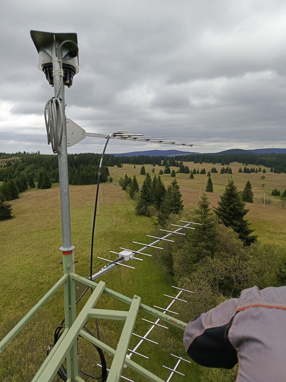 dobrého rumu z indického oceánu. Prostě příprava na Polní den, jak se patří! V sobotu ráno nás Slunce nenechalo dlouho spát a tak jsme se hned po snídani šli věnovat dalším přípravám. Lezu nahoru na stožár, abych přendal pomocné lano na druhou stranu stožáru, ale vítr mi to trochu komplikoval. Lezu dolů, abych se připravil na montáž šestého systému na 70cm, protože kluci by jinak nedali. Po větší debatě kam jsem schopen systém dát, volíme provizorium v polovině stožáru. Beru výložník a jdu s ním na stožár. Protože do konstrukce nechce nikdo vrtat, musím vyjít z již existujících otvorů a upravím jen výložník. Na zemi dtačí pár ran kladivem a je tu nový držák pro 4x 10el. Montáž někde nad polovinou výšky stožáru je hotová včetně nasazení antén raz dva. Přichází pokračování v oživování systému. Vypadá to, že vše je připravené a tak mě DIX školí, co s deníkem. Je to sice triviální, ale jsem zvyklý na Tučňáka. Můj největší problém je to množství oken... to mám strach, že zase budu psát něco někam, kam to nepatří... Přichází ovládání rotátorů a anténního přepínače. Závěrem nicméně hodnotím, že log zvládnu. Je jasné, že zbylé funkce budou asi skřípat, ale uvidím, jak moc. Před začátkem závodu mi zvoní telefon. Volá OK1USW, že pokud chci zkusit 24ghz, mám to rozbalit hned na začátek závodu. Hrnula se na nás pěkná bouřka a pro mě je tohle pásmo velkou neznámou. Beru parabolu, stativ, rádio a honem na bunkr. Zapnu a nechávám trochu srovnat oscilátor. Matěj mi otáčí jeden systém směrem na OK2M, abych měl hrubě azimut. Po chvíli jejich signál nacházím. Nevěřil jsem ani, že to projde, protože jsem si výškový profil nejprve prozkoumal na https://www.cbpmr.cz/vyskopis.html a s ohledem na zakřivení Země, tam měly stínit kopce, ale ono to prošlo jako nic. Euforii vystřídal strach ze zhoršujícího se počasí. Než to pro dnešek zabalím, jdu ještě hledat maják DB0FGB. Našel jsem ho velmi rychle, je tu hezky čitelný. Balím věci a jdu se schovat před stále se zhoršujícím počasím. Během toho hlásí Matěj, že hlavní systém má totální odraz. Vizuální kontrola je ok, nic se nikde neutrhlo. S ohledem na blýskající se obzor, Matěj odpojuje setup a jde se schovat do Faradayovy klece z koncernu WV. Nepříjemný vítr a bouřka, jak na jihu, tak na severu a to opravdu těsně kolem nás. Blesk jsem zaregistroval pouhé 3km od nás a dle radaru jich bylo kolem neúrekom. Potom co nás bouřka obešla, se přesouvám do domečku k 70 cm, abych se rozkoukal. Je to vážně hukot, furt někdo volá. Přepínat směry, občas někoho dotočit nebo doladit… A je to tady, poprvé vysílám na špičkový 70cm setup, o jakém jsem si mohl nechat zdát. Raději nikam nepospíchám, nechci zkazit dobře rozjetý závod. Po chvíli se DIX vrátil a vysvobodil mě, na takový cvrkot nejsem trénovaný. Je jasné, že zatím budu na pozici střídače. Usedám k druhým sluchátkům a dál pozorně sleduji, jak to Láďovi pěkně jde. Pak se na chvíli vydám za Matějem, abych okoukl, jak se mu daří. Přeskakovat mezi 3 pásmy a ještě při tom povídat, to je vážně výkon! Nechci ho zbytečně vyrušovat a tak se vracím zpět do domečku a pak přichází moje večerní směna. Trochu se peru s rotátory, přepínač už začínám trochu lépe ovládat. Po druhé ráno mě střídá VPZ a jdu spát. V neděli ráno vstávám bez budíku a to dokonce před desátou, což u mě není moc běžné. Hned po snídani usedám na chvilku střídat na 70 cm DIXe, aby se mohl trochu protáhnout a občerstvit. Kolem poledne jsem u rádia znovu a spojení přichází doslova ve vlnách. Buď nikdo nevolá, nebo najednou volají 3-4 stanice. Takže vyhrává ten, u koho slyším konec značky. Tím, že si nechávám prefix zopakovat, už dochází ke skluzu a netrpělivá stanice už nevolá. Takže jsem udělal 2 spojení a zase nikdo nevolá. Pak zase 2-3 stanice najednou. V jednu chvíli jsem dělal nějakou slabší DL stanici, furt jsme se nebyli schopni shodnout na tom, co jsem přijal a nějaká OE stanice přes nás rozjela CQ. Jako tohle se mi nelíbí, hlavně to nesmím podělat, zopakoval jsem, kdo s kým dělá QSO a ostatní prosím, ať počkají, na to se ozvalo „Sorry“. Vzápětí ta slabá stanice byla silná, protože se asi správně dotočila a bylo spojení hotové. O chvíli později mi kolega z OE zavolal a na závěr spojení se znovu omluvil. Je fajn, že na druhé straně byl někdo, kdo má dobré rádio, co umí poslouchat (a taky slušnévychování). Nezapomenu na to, když jsem měl na stole TS2000, která uměla dobře imitovat prázdno (úplné ticho) na pásmu jen asi 5-6kHz od QRO stanice, protože zkolabovalo DSP :D Jsem rád, že tady to tak nebylo a já zoufale nevolal na DIXe, jako když na mě někdo jel CW, že potřebuju zachránit. Pak přichází oběd, malý krátký výlet na Klínovec a zase na Spáleniště. Předpověď zase slibuje nějaké přeháňky a já bych chtěl znovu zkusit těch 24GHz. Jen co přijedu k bunkru, začne zlehka pršet, netrvalo to moc dlouho, kolem 13 UTC to přešlo. Vyndávám stativ, zapojuji XTVR a připojuji TRX. Podle vodopádu se snažím najít maják, ale nějak se to nedaří. Nakonec jsem ho našel, je oproti včerejšku slaboučký. Matěj mi zopakoval přesný kmitočet, abych dobře našel scatterpoint a potom DK0NA. To se ale nedaří, po pár minutách prostě nic! Potom mi vysvětlil, že to je normální protože včerejší bouřka a polední přeháňka zanechala v jehličkách smrků spoustu kapiček vody a vlhký je ivzduch. Tak ještě jeden pokus, druhý a hodina v háji a nepovedlo se. I to jsou 24GHz. Je konec závodu, jdeme demontovat a balit. Jedna anténa na bunkru dolů a pak jdeme sundávat sta