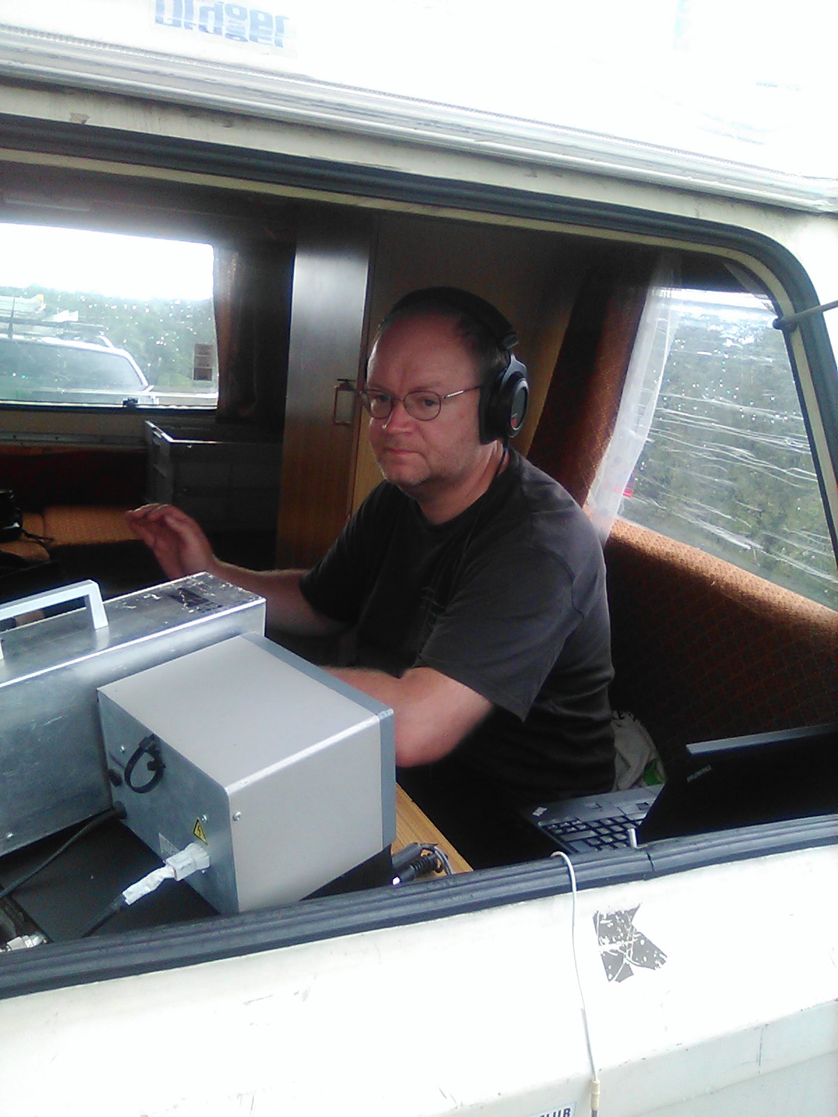 Závod, jak ho "z rychlíku" viděl OK1VPZ: OK1TEH: Čas se nachýlil a tak se chtě nechtě přiblížil termín Polního dne. Zde bych chtěl na úvod připomenout, proč vlastně věnujeme svojí energii těmto kratochvílím. Ač si to různí OK1GI a jemu podobní asi nemyslí, opravdu to neděláme s krví podlitými pohledem dle hesla vítězství nebo smrt, ale závodíme hlavně pro to, že nás to baví, bereme to jako sport a když se někdy něco nepodaří a čestně prohrajeme - například se soupeřem, o kterém víme, že pro vítězství musel vynaložit podobné množství energie v duchu fairplay - viz například naši přátelé z OL9W, tak jen pokrčíme rameny a nijak to neprožíváme, krom toho ne vždy je vrtkavá štěstěna nakloněna Krušným horám. Asi bych to shrnul do rčení, že lepší (slovy klasika) jest upřímná sprostnost a dobré svědomí, nežli šibalská moudrost a podvodné umění. Čímž chci říct, že upřímně gratuluji OL3Z ke špičkovému umístnění v Single kategorii na 70cm, snad je tento úspěch potěší, mě by ale asi nenadchnul... Na kopci jsme se potkali v netradičně nízkém počtu lidí až v pátek, nicméně jsme využili dlouhého denního světla a tak se nám podařilo vše postavit ještě před setměním. Bohužel venkovní teplota kolem 11°C kombinovaná s větrem vyloučila tradiční posezení u ohníčku s kytarou a tak většina freje proběhla v polopřítmí našeho vyhřátého baráčku a tradičně dobrého piva z minipivovaru Mlýn, došlo rovněž i na grilování různých masových zázraků, za kteréžto je hlavně třeba smeknout před Majkou, OK1DYX, bez jejíž kulinářských zázraků, vlídného úsměvu a ochoty vždy přiložit ruku k dílu by nebyla naše účast v Polním dni možná. Rovněž bych chtěl poděkovat Karlovi, OK1ELE, jehož plece jsme letos vzhledem k nízkému počtu lidí zatížili nejedním těžkým břemenem, TNX. U grilu jsme pak ve společnosti Jirky OK1JFR a Karla klevetili ač do časných ranních hodin.. Sobotní ráno nás překvapilo počasím Agfa-color a tak zatímco jsme na 70cm experimentovali s novým stackem pro jihozápad, odebral jsem se do karavanu zapojovat všechno zařízení. Protože OK1KN stále marodí a nebylo, kdo by ho zaskočil, zvolil jsem raději konfiguraci vše odjet z jedné FT847, protože mám MF na každém pásmu zvlášť a tak stačí pouze přepínat mezi 28, 146 a 433 MHz bez nutnosti nějakého přepojování kablíků. Začátek závodu začal v osazení Láďa, OK1DIX na 70cm (kde pak strávil asi 80% závodu), já na 23/9/3cm, které jsem odjel komplet sám a Karel OK1ELE zkusil provětrat pásmo 24GHz. Pro tuto příležitost si Karel přivezl starší zařízení OK1USW s 30cm parabolkou a 100mW výkonu, což by ani tak nevadilo, větší problém byl se stabilitou oscilátoru, takže by trochu problém najít na 70cm mezifrekvenci začátek pásma. Maják OK0EKL na 24 GHz nejede a DB0FGB je sice k nalezení, ale je na něj nutné nejprve přesně nasměrovat parabolu, takže se poměrně obtížně hledá. Přesto se během chvilky povedlo udělat pěkné 112km 24 GHz QSO s OK2M, signál jako noha. Bohužel poté již přišlo pršení a blesků sršení, což další pokusy znemožnilo. Kolem kopce se totiž začaly promenádovat klikaté blesky, takže jsme s Karlem zbaběle vzali roha z plastového karavanu do Faradayovy klícky na kolech a sledovali jsme okolní dění s vytřeštěnýma očima na to venkovní dopuštění.. Už nad vámi taky o Polňáku někdy rotoval chobot supercely? Po cca 1h jsme ale už byli zpět na pásmu, bohužel na 23cm z ničeho nic najednou přišel totální odraz SWR od velké paraboly, takže to v té chvíli vypadalo, že jsme na 23cm dovysílali, protože nebylo v lidských silách v deštivém a větrném počasí sundat velkou anténu dolů kvůli výměně kabelu. Naštěstí jak se později ukázalo, problém byl (asi) "jen" v nalomeném půlpalci u konektoru, takže při jeho vhodné orientaci již bylo možné vysílat. Tato závada mi nicméně zabrala více, než 2,5h výpadku, který se pak dost obtížně doháněl... Jinak podmínky nebyly nic