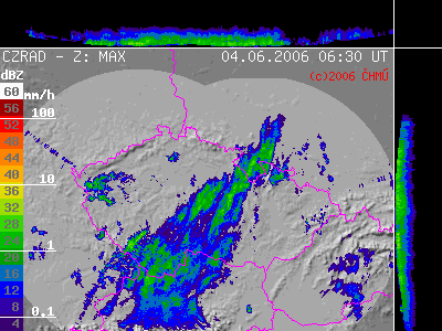 trase intenzivně prší jenom na jednom určitém místě a stanice jsou