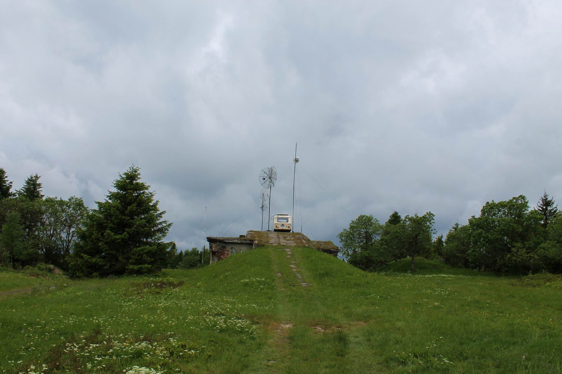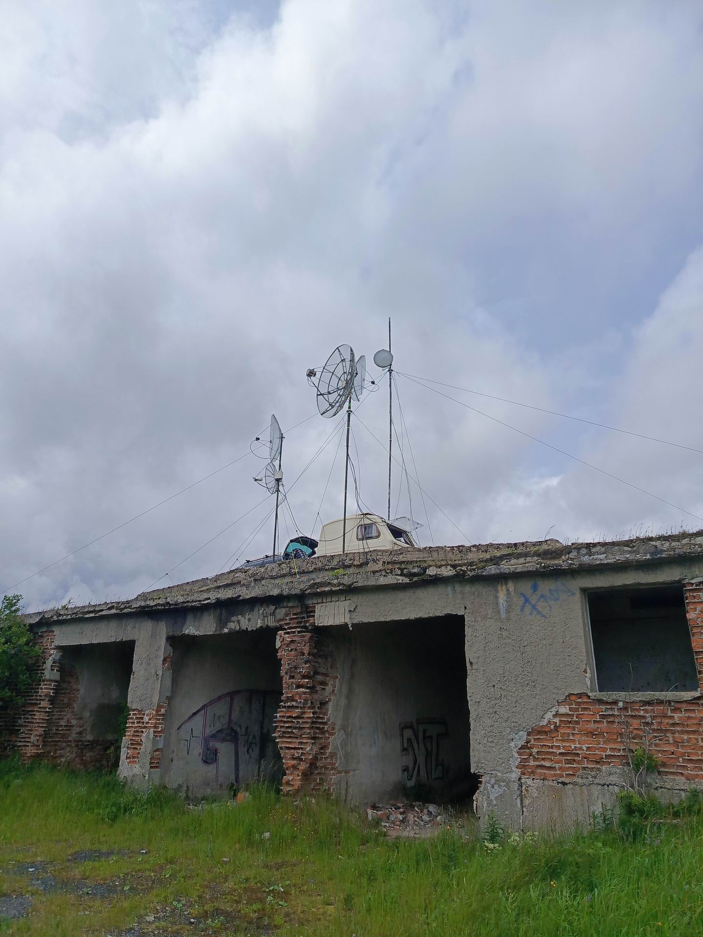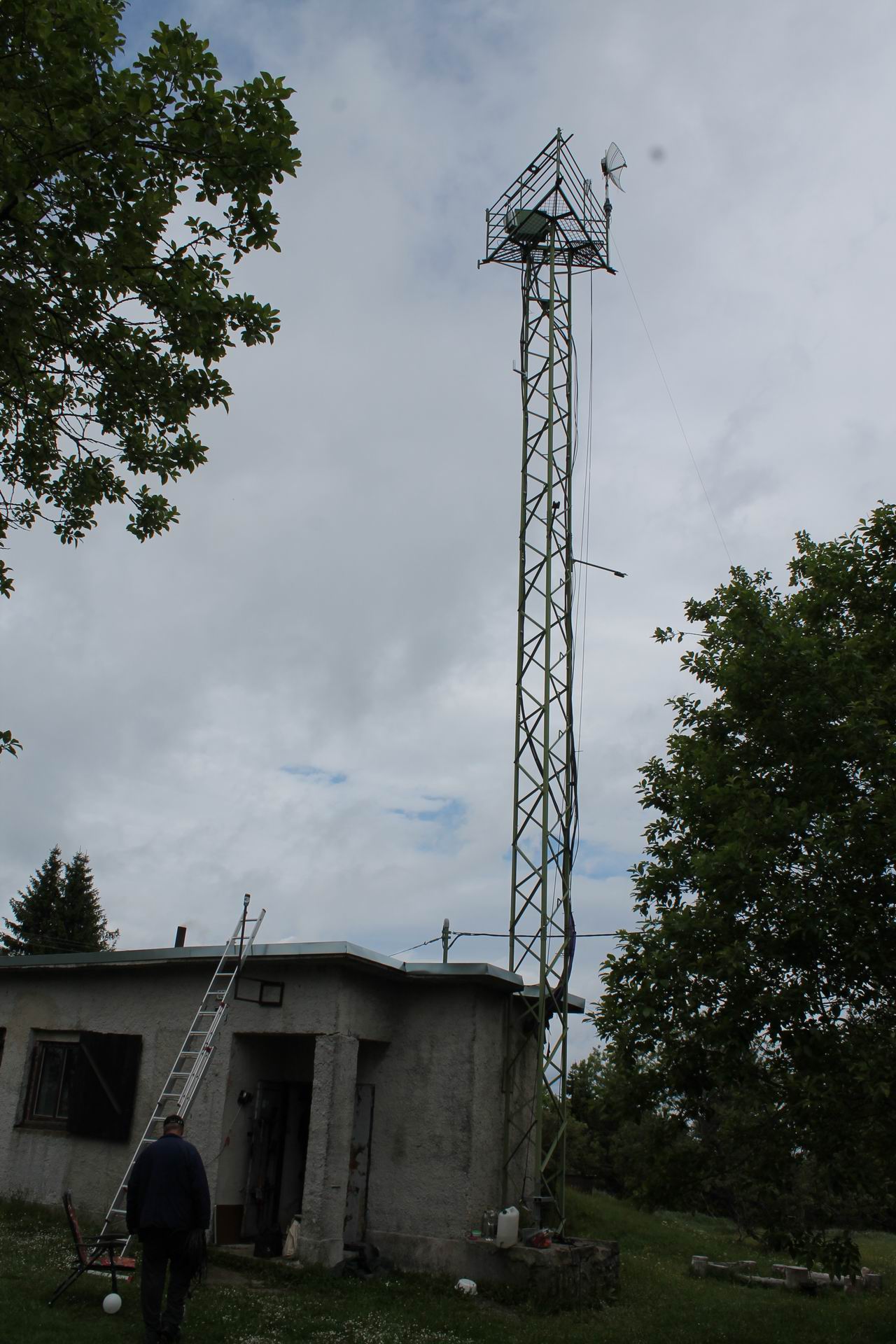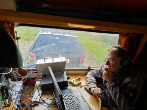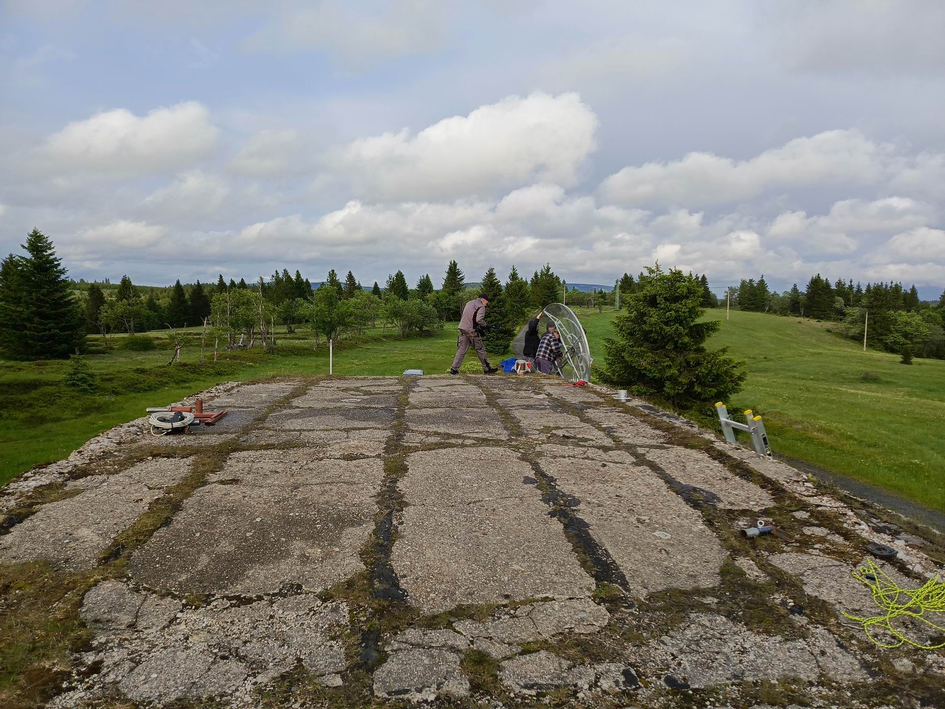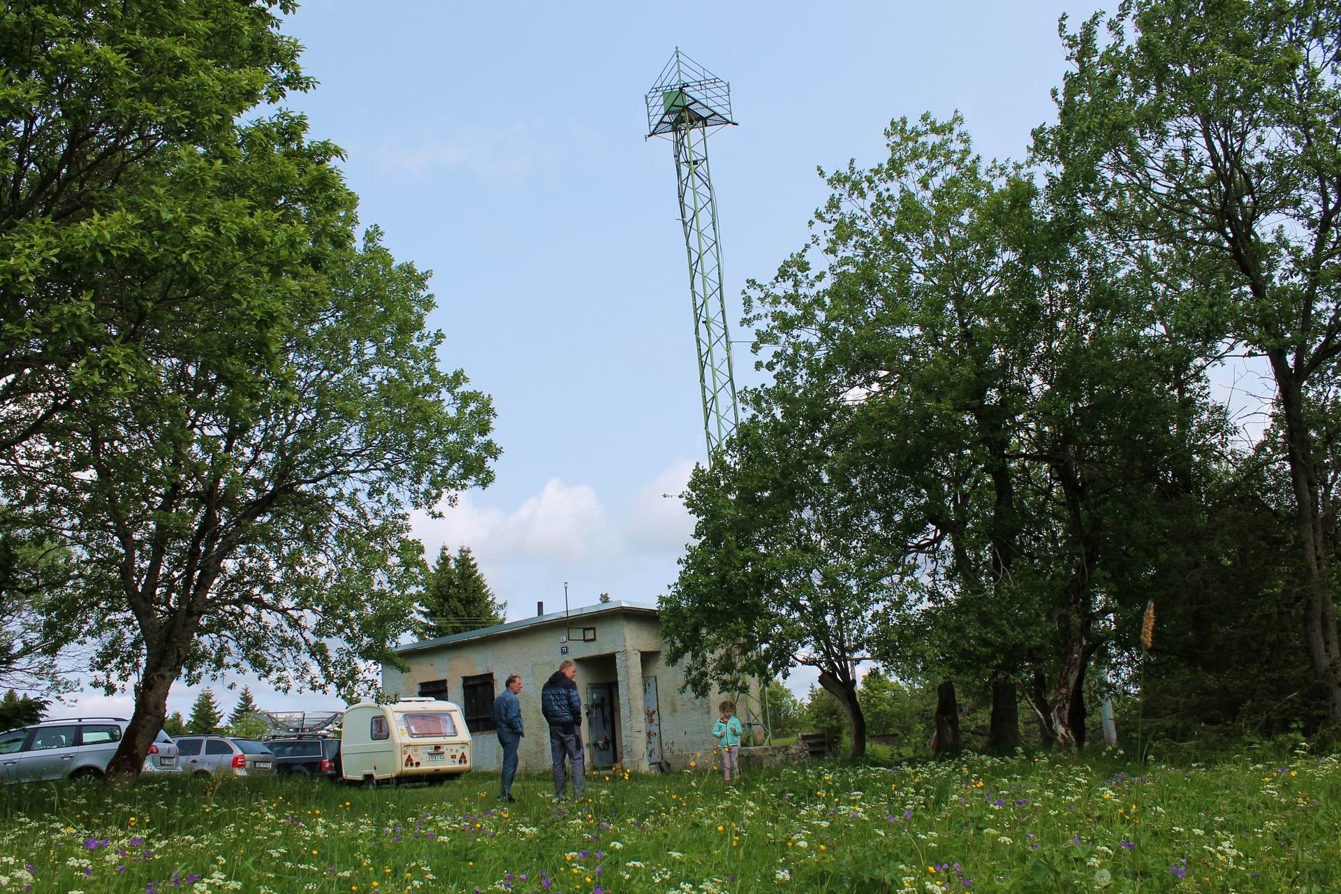 Co napsal OK1DIX: Mikrovlnný závod, normálně spíše pohodový závod, kde se toho tolik nestaví a vzhledem k poměrům panujícím dnes na (nejen) mikrovlnných amatérských VKV pásmech i operátorsky ne tak náročný. To jsme ještě nevěděli, co nám může Murphy v červnu v podobě počasí připravit. Příjezd s XYL Majkou, OK1DYX jako obvykle ve čtvrtek odpoledne. Vládne pohodička i když nás na cestě zkropilo trochu deště, ale na kopci je zatím sucho a tak stihneme připravit něco na oheň a večerní opékání. V noci přijíždějí OK1VPZ a OK1TEH. Páteční ráno nás ovšem vítá deštěm a zesilujícím větrem. Teplota je zatím jakž takž, neboť fouká od jihozápadu, ale to se také změní. Když déšť na chvíli přestane, natahujeme holínky a rozvíjíme s Majkou a Matějem síťový napájecí kabel na bunkr. Pak nás Majka opouští, neboť musí jet do Lovosic pro vnučku, kterou nemá kdo jiný hlídat.