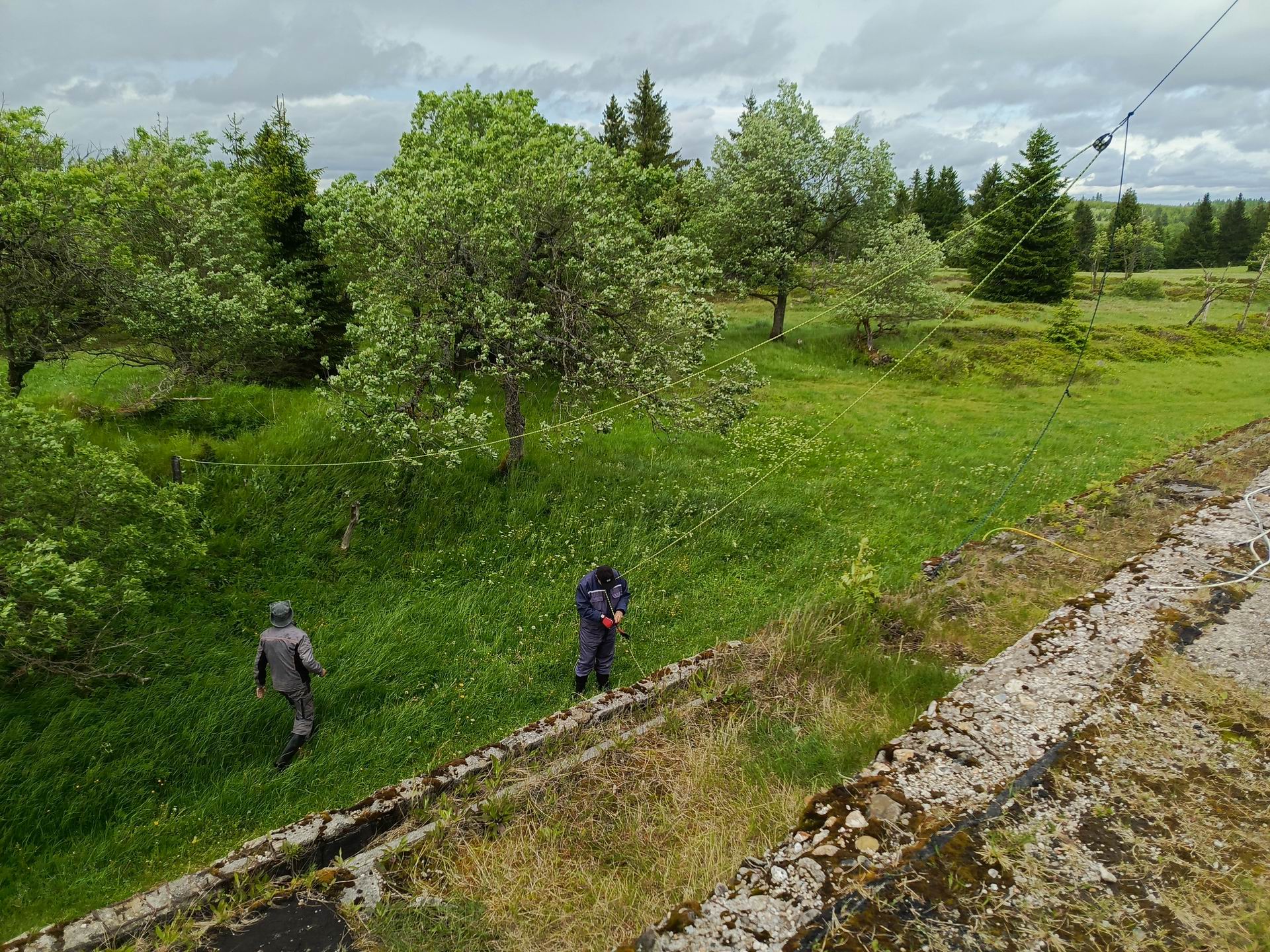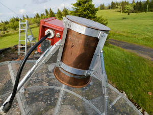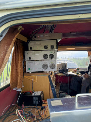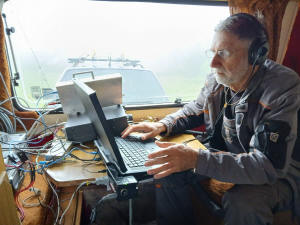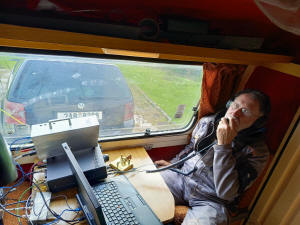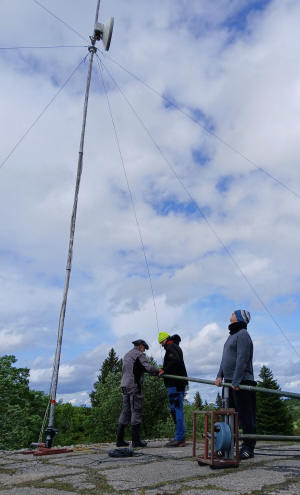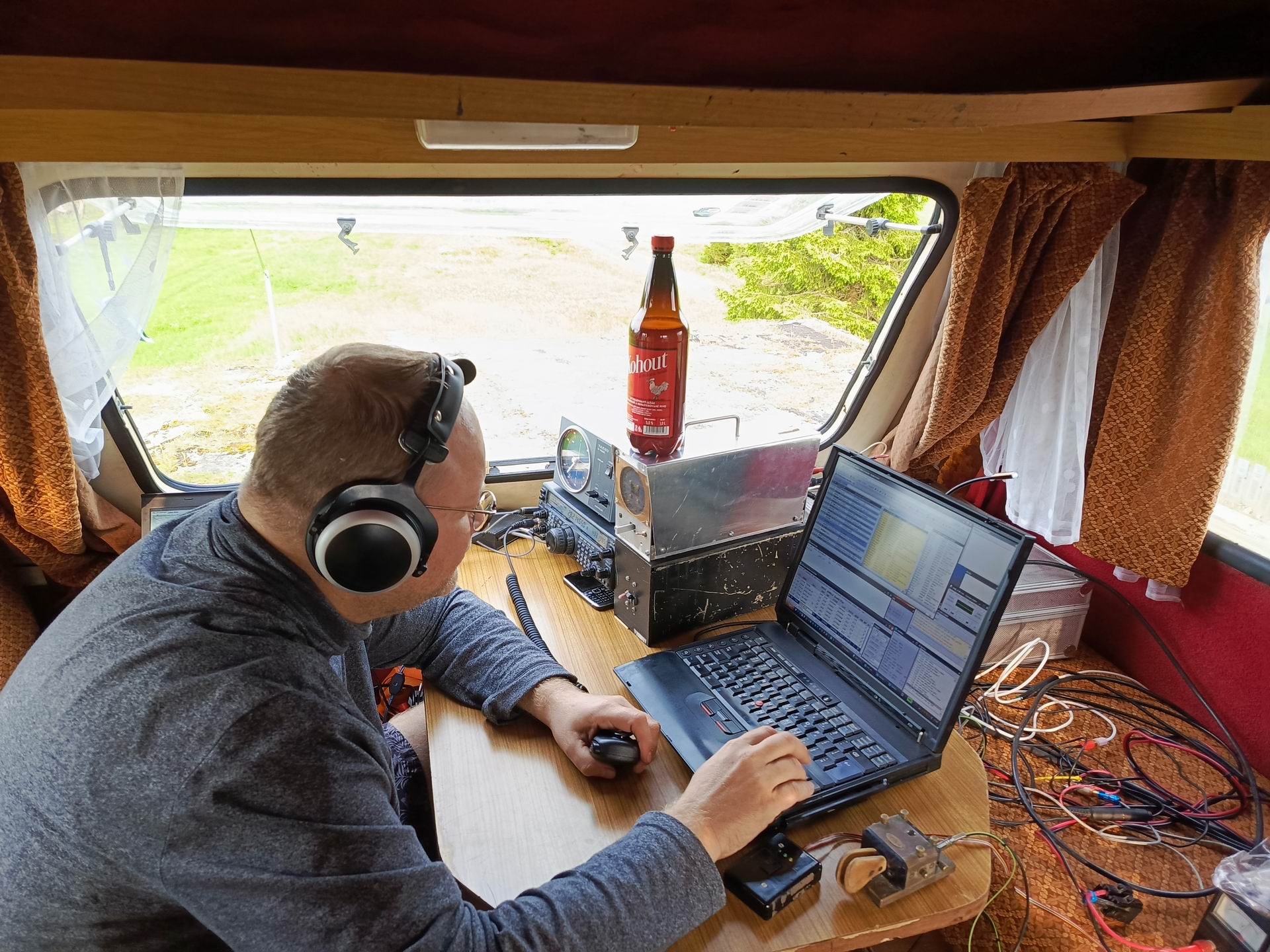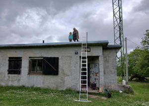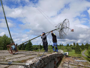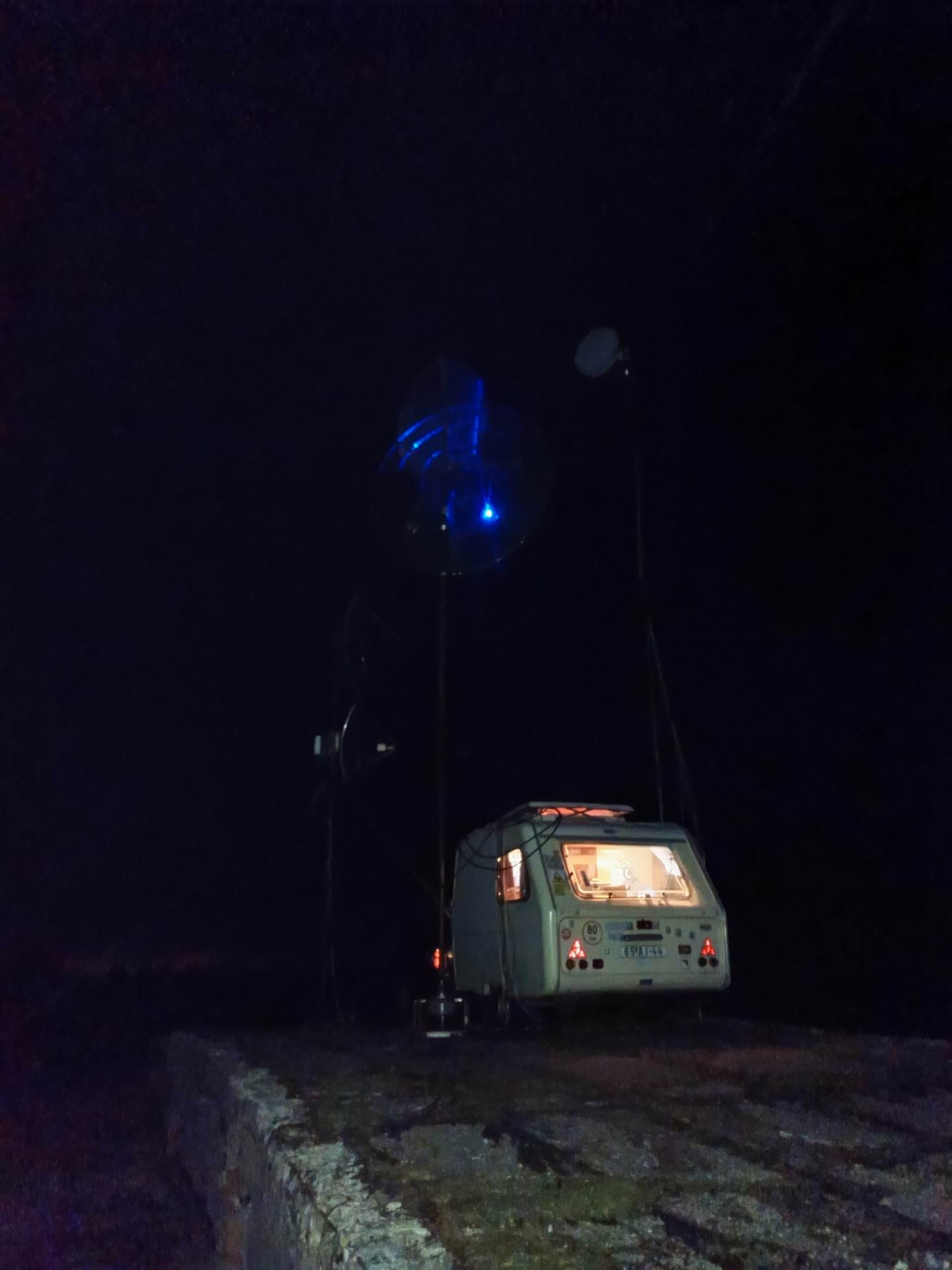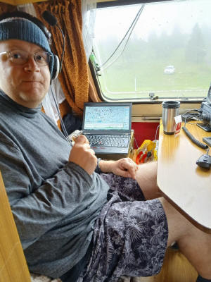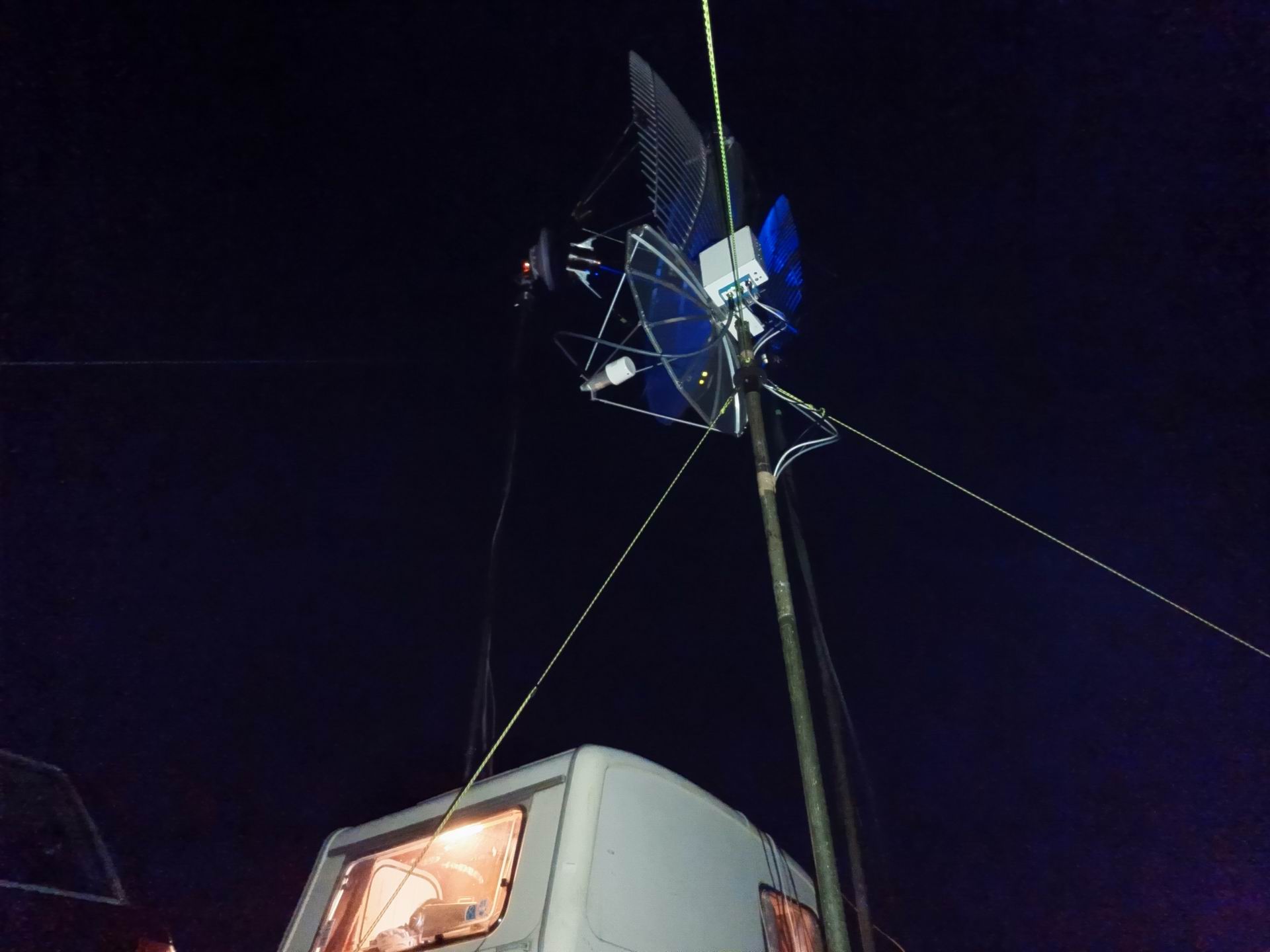 Co napsal OK1DIX: Mikrovlnný závod, normálně spíše pohodový závod, kde se toho tolik nestaví a vzhledem k poměrům panujícím dnes na (nejen) mikrovlnných amatérských VKV pásmech i operátorsky ne tak náročný. To jsme ještě nevěděli, co nám může Murphy v červnu v podobě počasí připravit. Příjezd s XYL Majkou, OK1DYX jako obvykle ve čtvrtek odpoledne. Vládne pohodička i když nás na cestě zkropilo trochu deště, ale na kopci je zatím sucho a tak stihneme připravit něco na oheň a večerní opékání. V noci přijíždějí OK1VPZ a OK1TEH. Páteční ráno nás ovšem vítá deštěm a zesilujícím větrem. Teplota je zatím jakž takž, neboť fouká od jihozápadu, ale to se také změní. Když déšť na chvíli přestane, natahujeme holínky a rozvíjíme s Majkou a Matějem síťový napájecí kabel na bunkr. Pak nás Majka opouští, neboť musí jet do Lovosic pro vnučku, kterou nemá kdo jiný hlídat.