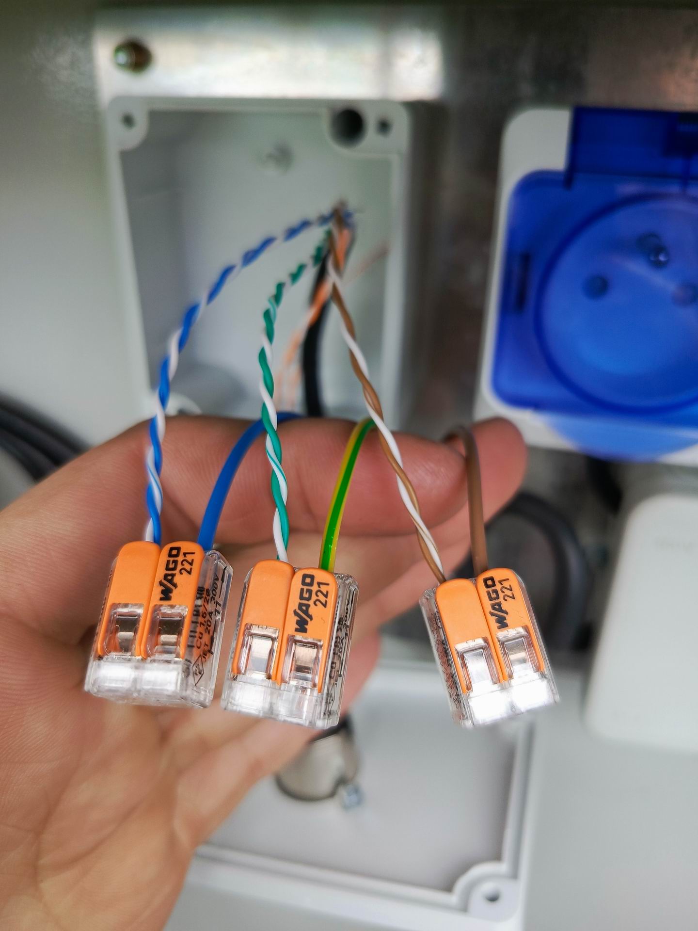 napájení z N-kových redukcí na původní svorkovnice. Po vytažení na stožár mi