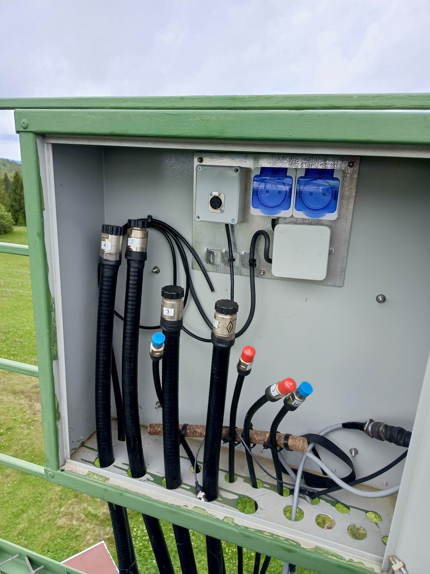 bedny na vrcholu stožáru namontuje zásuvka na 230V a zdroj 27V umístí