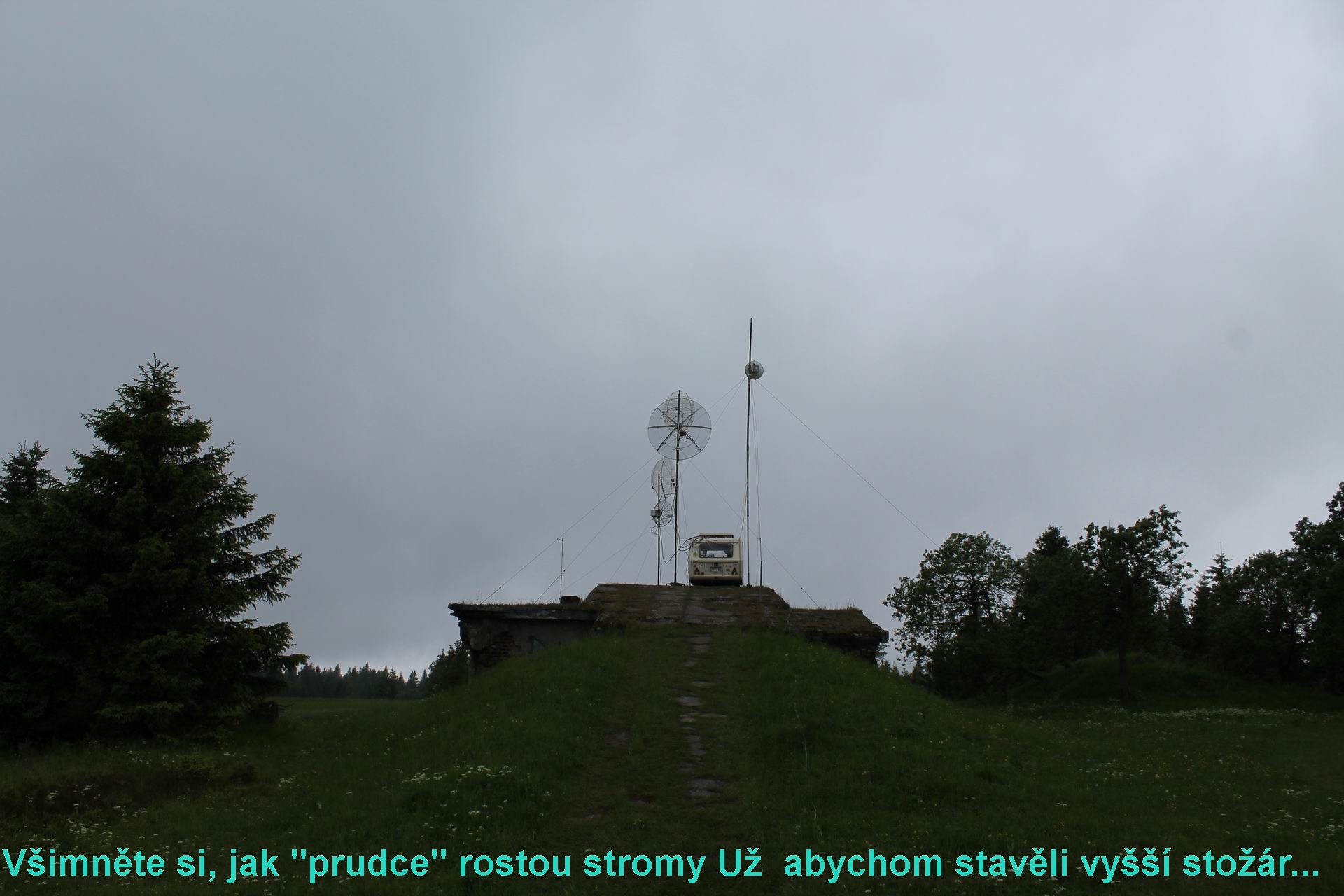 se na nás Murphy konečně usměje. μW contest pohledem OK1ELE Je pátek ráno a na poslední chvíli dobaluji věci na mikrovlnný závod. Většina věcí už je v dodávce, ale ještě nakládám trafo a nějaké nářadí. Cestou doháním nákup drobného spojovacího materiálu a hurá na kopec! Hned za plzní už vím, co jsem zapomněl! Není to nic kolektivně důležitého, je to jen nafukovací matrace… Cesta vůbec neutíkala a tak s malou svačinou a pauzou na kafe přijíždím v poledne. Tak hned po přivítání začínám vyndávat věci z auta a zjišťuji, jaký je plán práce. S ohledem na to že má hned začít pršet, jdeme do baráčku zkusit předělané trafo bez dlouhého vedení. Oba modemy naběhly a spojily se. Je to dobré, můžeme s ním na bunkr, hned jak přestane pršet. Zhruba o hodinu a svačinku s kávou později vyrážíme na bunkr a jdeme konečně budovat něco, co bude vidět. Přichází spousta mravenčí práce a až po několika hodinách je vidět první výsledek. Ono z mého pohledu to spíš byla málem katastrofa. Vztyčení stožáru s 3cm probíhalo standardně, až do chvíle než stožár samovolně pokračoval za jehlou! Nastavení krajních kotev bylo velmi nevhodné a málem to celé letělo dolů za „Patejdlem“. Tento překmit byl asi jen o 20° takže to nedopadlo fatálně. Stožár naštěstí jen propružil, DIX řval a nadával! Tak 3cm už stojí a teď přichází na řadu velký systém na 23cm. Během příprav přijíždí Robert OK1FEN a hned po pozdravení se chopí práce a pomáhá dle pokynů „stavbyvedoucího“ DIXe. Je fajn tu mít někoho nezkaženého, protože tu nepředvede (NE)oblíbenou „lidovou tvořivost!“ (klení DIXe) Stavba velkého systému probíhala jako obvykle. Jen mé přání na úpravu šroubů feedu nebylo vyslyšeno a tak jsem s těžkým odporem a hlasitými připomínkami točil maticemi 3x 70 + 1x 55 otoček. 2 stožáry už stojí a jedeme karavanem vzhůru. Stavíme ještě 3. stožár a jdeme do finále. Přichází nějaké to drátování kolem přípoje trafa a LANky. Voláme na baráček, aby nám zapnula Majka proud, ale nic! Trafo nebručí, to je vážně divné! Ani v karavanu se nesvítí. Jedu honem na barák revidovat připojení PLC. Jističe zapnuté a jak měřím proud tak je to symetrické na obou fázích stejně kolem 0,2A. Jedu zpět a už pod bunkrem vidím v karavanu svítit lampičku. Je zajímavé, jak elektrický proud jde u nás pomalu a teď vážně proč? První varianta je porucha vedení a tak s vhodným izolovaným nástrojem procházím naši nekonečnou napájecí cestu až na barák. Výsledkem je, že pánové neumí zapnout lampičku nebo její spínač má defekt. Do příště jim dám na trafo asi 100w žárovku jako kontrolku! Tak to nejtěžší mám hotové a jdeme si s Robertem projít stavbu 13cm. Řešíme detaily a připravujeme všechny věci na sobotní montáž. Po necelé hodině je vše hotovo. S tím přichází večerní posezení u ohně. Grilování a opékání to je moje zábava! Už se setmělo a tak si říkáme, co je s Matějem, že ještě nepřišel? Robert se za ním rozhodl vypravit, ale dlouho se nevracel. Po více než hodině se vrátil s informací, že setup neposlouchá na velkou parabolu. Když se později vrátil i Matěj přinesl vadný RX přepínač. Chvíli jsem do toho koukal a měřil… no prostě jeden tranzistor nespíná relé. Dokonce i VPZ vylezl z pelechu, aby se na to letmo podíval. Já konstatuji, že to buď ráno opraví, nebo do prkna zatluču 4 hřebíky a udělám alternativní DC přepínač ovládání VF relé. Ráno moudřejší večera, nechám to být a jdeme spát. O tomto problému už hodně napsal VPZ v úvodu tak se nebudu opakovat. Je Po návratu na pevnou (nehoupající se) zem tu na mě čekala oprava rotátoru pro 9cm. V první chvíli to vypadalo na volný pin konektoru, ale ejhle jeden kabel mi zůstal v ruce. Protože VPZ tou dobou pracoval na přepínači, podal jsem mu to, aby to jen připájel. O chvíli později hotovo a odnáší to na bunkr s dalšími věcmi. Za chvíli zvoní telefon, že to furt nejde. Tak si balím věci a jedu to řešit přímo na bunkr. Nakonec závada opravdu nebyla v tom „hnusném 6pin konektoru“ na ovládací skřínce, ale v robustním konektoru u rotátoru. Po otevření zjišťuji, že to někdo „zprasil“ a upadl vývod. Rotátor z druhé ruky :( Tak znovu a lépe. Očistit od té bezolovnaté pájky a znovu připájet. Otevřít ovládací skříňku a vyměnit pojistku. Velmi mě překvapil Matěj tím, že mi podal sáček plný různých pojistek a já v něm dokonce našel tu správnou. Perfektní připravenost. Jdu to vyzkoušet a funguje tak už jen pořádně zagumovkovat a hotovo. Tak snad vše vyřešeno a za půl hodiny začíná závod. Doufám, že už se nic nepodělá! Vyrážím na výlet na Klínovec a vracím se až večer… Do noci se nic zásadně zajímavého neodehrálo, jen jsem se pokusil vyfotit modré antény. V neděli po poledni dodělávám nějaké kabelové lišty a kousek nové instalace ke stožáru… Před koncem závodu vyrážím na obhlídku okolí směrem Bludná. Ta příroda je tu vážně nádherná, a i přesto že zrovna pršelo. Závěrem jsem ještě chvíli pozoroval, jak vítr morduje antény a jak má stožár už vůle. Bude to s tím chtít něco udělat. Závod skončil a přichází bourání. S DIXem opět nahoru na stožár a jdeme demontovat. Jen ten vítr nám dával hodně zabrat. Stožár se hnusně houpal a s většinou věcí byla těžká manipulace. Ona ta drátěná parabola je malá 50x80cm, ale i když byla k větru bokem, byla s ní hodně blbá manipulace. Když dolů spouštíme poslední věci, začalo pršet. Než jsem slezl dolů, už na mě padaly kroupy! O chvíli později padají jen drobné kapky a svítí slunce. Jdeme tedy bourat na bunkr
