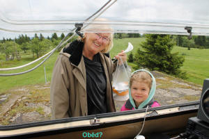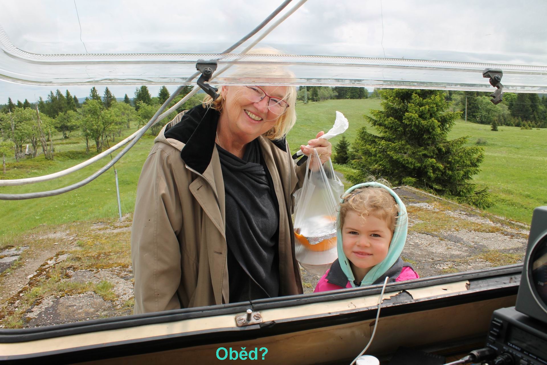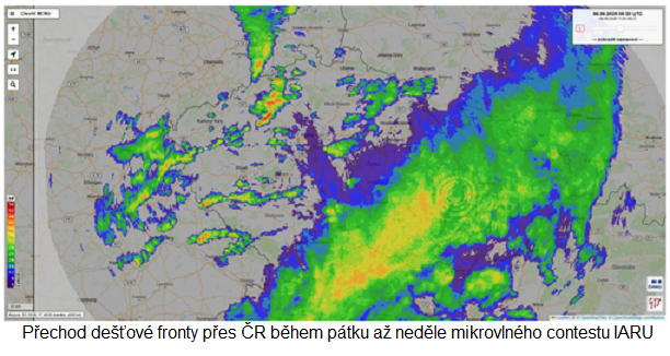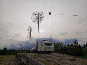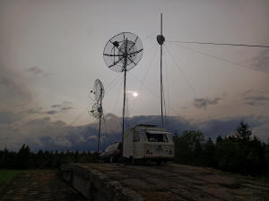 Ani v sobotu se počasí nelepší, spíše naopak. Radar ukazuje množství dešťových mraků, nárazy větru jsou ještě silnější, mění se na severozápadní a klesá i teplota. Nicméně v mezeře mezi deštěm vylézáme s Karlem, OK1ELE na stožár a instalujeme 13cm parabolu. Kvůli krátkým kabelům nemůžeme vysunout anténu na plnou výšku, ale vzhledem k větru je to možná dobře. Karel ještě hrdinně instaluje do bedny s vyústěním kabelů síťovou zásuvku a tak můžeme připojit zdroj a zapojit 13cm transvertor umístěný u paraboly. Stihneme to akorát. Já slezu ještě za sucha, ale Karla o 5 minut déle už stihne slejvák. Naštěstí všechno funguje a tak už nahoru nemusíme. Odpoledne začíná závod. Jedu jako obvykle při MW contestu 3cm. Situace na pásmu je ale zoufalá. Je tam jen několik málo stanic. Pravda, jsou slyšet rainscattery, ale ty jsou jen z nízkých dešťových mraků, takže se žádná daleká spojení nekonají. Tropo podmínky jsou naprosto bídné a signály jsou mnohdy ještě roztrhané průchodem přes dešťové mraky. Žádné DXy nejsou na obzoru a velké úsilí přináší jen několik delších OM stanic, z nichž jediný OM4CW je přes 400km. Pak projdou přes jakýsi scatter HA1YA a DL2KCK. Jsou však i dlouhé minuty, kdy není na pásmu slyšet jediný signál. Tristní. Vydržím to do půlnoci a pak po pouhých 38 QSO jdu zaujmout polohu ležícího střelce. Matěj ještě udělá sked s S59P a tím 3cm do rána končí. Ráno přicházím okolo 0630Z. Počasí je stále stejné. Poryvy větru lomcují stožáry a dešťové mraky se stále hrnou ze západu. Podaří se domluvit na chatu HG7F (534 km), který kupodivu projde a zůstane naším ODXem. Pak už jen bída s nouzí, na střechu karavanu bubnuje déšť a periody úplně prázdného pásma se prodlužují. Sked s OL7Q se těsně nepodaří. I Matějův pokus o jinak celkem obvyklý sked s IK3GHY nemá naději. Ani sked s PA4ZP před koncem závodu se nepodaří dodělat, neboť závod mezitím končí. Výsledek 50 QSO a 11,5 tis bodů je na mikrovlnný závod opravdu slabý a je to nejhorší výsledek (pokud nepočítáme roky, kdy jsme se z různých důvodů nezúčastnili) za posledních 10 let. Pak už jen skládání. Alespoň v tom se nad námi Murphy smiloval a jako zázrakem skládání na bunkru i na domečku proběhlo bez deště i když radar stále hrozil. Loučíme se s Karlem, OK1ELE, který musí druhý den brzy do práce. Zbytek osazenstva zůstává do pondělního rána, které je pochopitelně jako vymalované i se sluníčkem. Když to shrnu, tak asi nejlepší zábavu z celého závodu měla naše 5letá vnučka, která si užila horské přírody.