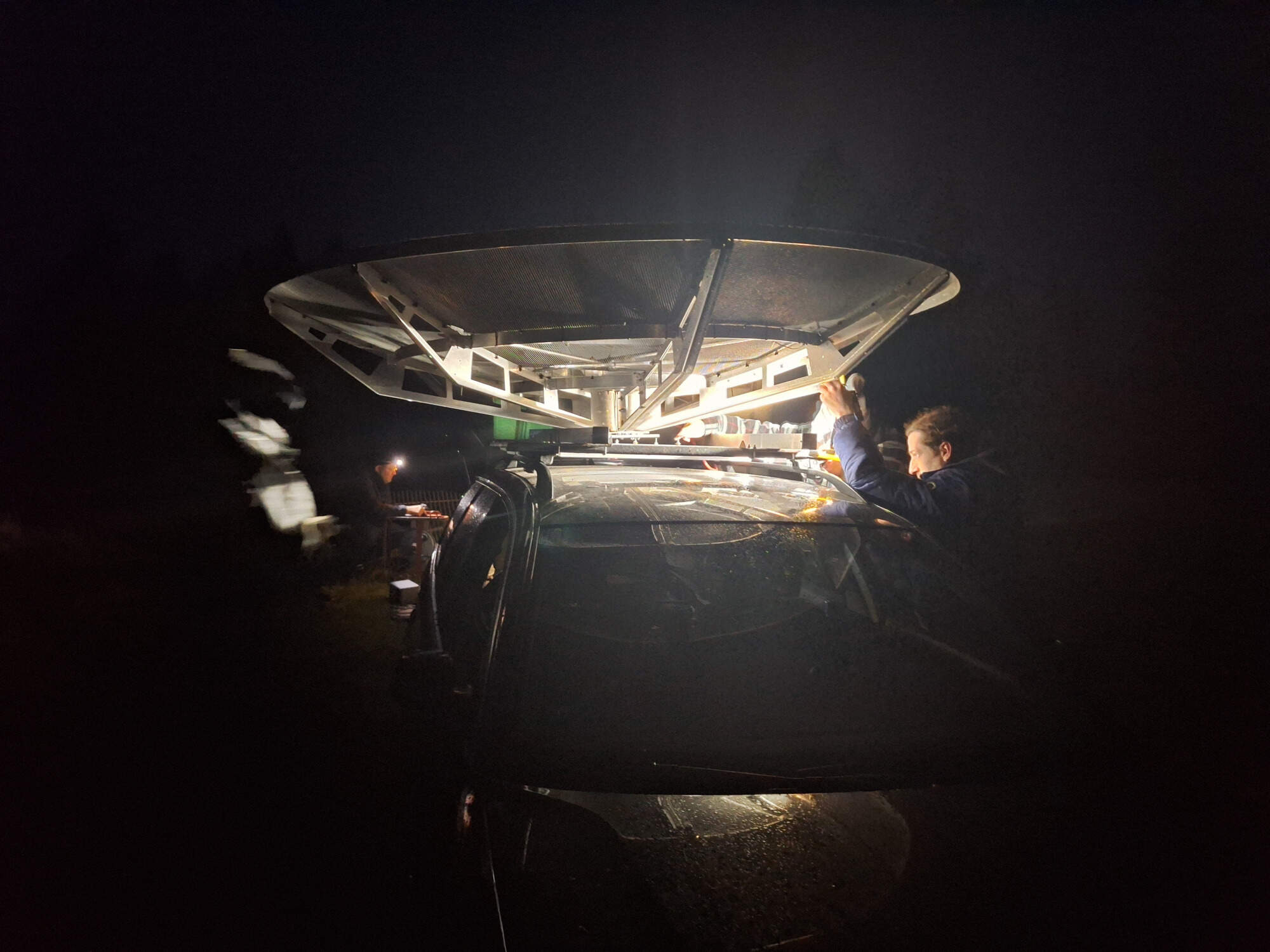 docela zvládli a při soumraku už stála i 2,4 metrová anténa pro 23cm, která