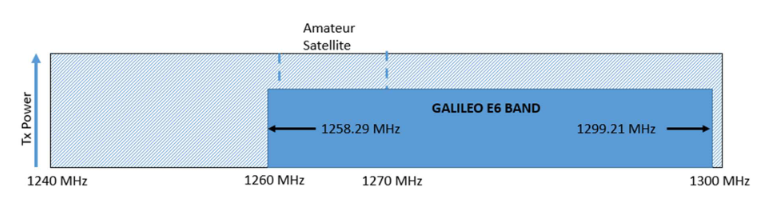 Služby GALILEO v pásmu 23 cm Obrázek 2 níže ukazuje rozsah služby GALILEO uložené v pásmu 23 cm. Toto ilustruje, proč nejsou vyžadována žádná další technická opatření pro amatérské služby pod 1258 MHz a zbytek pásma až do 1240 MHz lze nadále využívat tak, jak je to dodnes.