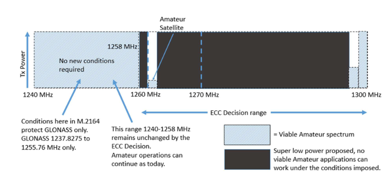 ![]() Používání pásma 23 cm v zemích CEPT s ohledem na rozhodnutí ECC(25)01 překlad OK2KKW ze zdroje: https://www.iaru-r1.org/wp-content/uploads/2025/07/ECC-Decision2501-support-paper.pdf ÚVODEM: Před Světovou radiokomunikační konferencí WRC-23 schválilo Rádiové shromáždění ITU-R (a zveřejnilo) doporučení ITU-R M.2164, které poskytuje technické a provozní pokyny opatření, která mají být aplikována na amatérské a amatérské družicové služby na ochranu rádia navigační satelitní služba (RNSS) v pásmu 23 cm (1240-1300 MHz). WRC následně přijal poznámku pod čarou v Radiokomunikačním řádu platném pro kmitočtové pásmo 1240-1300 MHz, které správám připomíná, že jakékoli rušení přijímačů RNSS ze strany amatérských služeb by se mělo urychleně projednat. Ukazuje na Doporučení M.2164, který poskytuje návod, jak lze minimalizovat potenciál rušení. Poznámka pod čarou (5.332A) není povinným opatřením ROZHODNUTÍ CEPT ECC(25)01 V evropském regionu CEPT SE vypracovalo rozhodnutí ECC (25)01, které identifikuje přidělené Pásma RNSS pro systém GALILEO a také opatření založená na pokynech v doporučení M.2164, k ochraně přijímačů GALILEO v rozsahu 1258 – 1300 MHz před potenciálním rušením z amatérských a amatérských satelitních přenosů. Ochranná opatření v rozhodnutí ECC (25)01 jsou vyžadována pouze pro 1258 – 1300 MHz část 23cm pásku. Neexistují žádná omezení pro použití části 1240-1258 MHz pásmo, které může pokračovat v používání jako dnes. V konečném důsledku je použití technických opatření vnitrostátní záležitostí a podléhá jí diskuse mezi národním regulátorem a amatérskou komunitou v zemi dotčený. Počet pozorovaných případů interference je nadále velmi malý a studie IARU také ukázaly, že pravděpodobnost trvalého rušení je velmi nízká. Viz příloha 9 Zpráva ITU-R M.2513-1 a zpráva ECC 359 strana 2 2 Jak se amatérské služby vyvíjely za posledních 50 let Obrázek 1 ukazuje aktuálně používané pásmo 23 cm se shrnutím původního pásma IARU plán pro region 1. Přesné množství spektra dostupného amatérským operátorům z oblasti výše uvedený rozsah v jakékoli konkrétní zemi závisí na národních licenčních ujednáních a v v některých případech existují dodatečné národně specifické příděly. Vnitrostátní předpisy určují maximální úrovně výkonu vysílače a jakékoli další specifické sdílení spektra nebo koordinační podmínky. Ve většině zemí je pásmo již úspěšně sdíleno s dalšími službami.