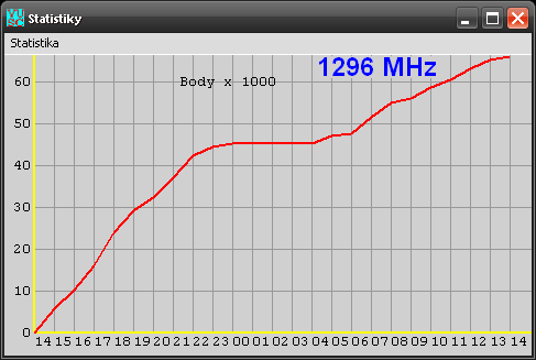 tentokrát vynechali i tradiční ohníček s kytárou a šli rovnou do hajan. S podmínkama to bylo vůbec dost zvláštní, jediné zlepšení jsem pozoroval u HA5KDQ, kteří byli na 23cm na 550km S9+40dB a nadprůměrně silný signál S9+ měli též OM3KII, OM3RRC a OM3KOM. Naopak OM6A byli sice silní, ale nijak výrazně. Ve stejné době jsem zkoušel OK1KUO a OM3RRC na 9cm s našim QRP šidítkem a nic. Taktéž HA5KFZ a jiné HA stanice pouze reportovaly, že nás slyší, ale QSO z toho nebylo. Rovněž se mi nepovedlo spojení s Pavolem, YU7AJM... Holt není každý závod posvícení. Spát jsem tentokrát šel někdy kolem 00:00utc za stavu 133 QSO a vstával jsem ráno ve 04:00. Ranní provoz začal slibně snadným AS QSO na téměř 700km se Zlatkem 9A2SB, SM7ECM, HB9BAT, I4CIV, G3XDY 827km, F6DKW 784km (škoda že měl Maurice rozbitou sedmdesátku), HA8V, OZ9PZ, IW4ARD, OZ6TY. Zkoušel jsem velmi brzy ráno též 1150km dlouhé QSO s LZ2T, ale nic z toho nebylo. Využil jsem příležitosti, že ještě nepřišel Jarek a udělal též několik QSO na 3cm. Po návratu na 23cm počty QSO narůstaly včetně pěkného QSO s OZ9GE do JO66 a již jsem pomalu začal věřit tomu, že se opět podaří překročit magickou hranici 200 QSO, když v tom asi 4h před koncem závodu zapískala ochrana a pohádky byl konec, jak se ukázalo opět se přerušil TX jumper k velké 2,3m parabole... Přes půl hodiny jsem tedy přepřahal koně a závod odjel již pouze na 2 směry do menších antén s o 6dB menším ziskem. Kupodivu to celkem šlo a podařilo se udělat i pár pěkných QSO, jako například DK1CB do Hamburku na random, ON4CJQ/P, I4UJB a dokonce i G5LK/P 807km s pěkným signálem. Závěr závodu pak dělám Tomáše OK2PWY (tnx) a poslední QSO s DG6SA z JO31 s pořadovým číslem 188 QSO. Na body to bylo trochu slavnější, podařilo se 66 000 bodů, tedy téměř stejný výsledek jako před rokem a skvělých 12QSO do Itálie. Nyní ještě pár slov k vyšším pásmům.
