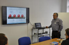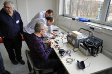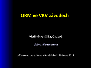 Rádioamatérske stretnutie Nová Dubnica 2016 Začal jsem slovensky, ale hned z toho vycouvám z úcty k pořadateli, protože ačkoli mám na Považí rodinné vazby, moje slovenština silně utrpěla pracovními povinnostmi v Polsku a nechtěl bych ten hezký jazyk svojí neznalostí prznit. Proč takový zvláštní úvod? Protože musím vyslovit velké poděkování Michalovi OM3TRN, jenž je technickou autoritou contestového týmu OM3W, za jeho nápad, iniciativu a v neposlední řadě rovněž za zajištění velice zajímavého a nevšedního VKV semináře pro zástupce předních contestových stanic a rovněž za jeho pozvání, takže jsme se tohoto "podujatia", zaměřeného na otázku fázového šumu radioamatérských zařízení, mohli také (jako nejvzdálenější návštěvníci) aktivně zúčastnit. Není žádným tajemstvím, že QRM situace na OK-OM pomezí, kam se během VKV závodů koncentruje řada QRO stanic, není jednoduchá. Velké výkony, spojené s velkými anténami a kvalitními operátory často dohání malé stanice vybavené jen běžnými komerčními zařízeními někdy až k zuřivosti, což může vést až k narušeným mezilidským vztahům, jak to známe z OK. Je proto chvályhodné, že se tohoto minisetkání mohli zúčastnit např. zástupci OM6A, OM3KII, OM8A, OM2Y, OM3RRC, OL9W, OK2C a pochopitelně domácího radioklubu (OM3W). Celkem 24 lidí. Naše (OK2A) účast byla spíše symbolická, ale rozhodně toho 800km výletu nelitujeme. Atmosféra byla velice přátelská, snad s výjimkou jednoho amatéra z moravské strany, kterému jsem svou účastí asi trochu ubral dobrou náladu, hi (ne, opravdu nemám na mysli OK2ULQ :-)). Protože mne OM3TRN před časem požádal o úvodní technický přehled, zmodifikoval jsem z nedostatku času svoji starou prezentaci ze Zielence a doplnil ji z hlediska zaměření tohoto semináře - tedy ve směru problematiky fázového šumu (především) oscilátorů. Tu prezentaci si můžete prohlédnout, pokud si kliknete tady. Najdete v ní spoustu dalších odkazů na zajímavé čtení. Výsledkem - ostatně nepřekvapivým, hi - je doporučení použít pro VKV contesty dobrý KV transceiver s transvertorem. Ne snad proto, že KV transceiver je nějak kvalitnější, než dobré VKV rádio, ale jednoduše z toho důvodu, že jeho oscilátor (logicky) pracuje na nižších kmitočtech, než VKV zařízení a má tedy pravděpodobně nižší postranní šum (protože to je fyzika). Transvertor (up konvertor) pro VKV pásma je potom vybaven fixním transpozičním krystalovým oscilátorem, který lze zkonstruovat s mnohem menším šumem, než přelaďovaný oscilátor (má totiž rezonanční obvod - krystal - s mnohem větším Q v pásmu VKV, než jakýkoli LC rezonanční obvod). Michal OM3TRN tedy nemusel zbytečně popisovat "omáčku" okolo fázových šumů (neboť to jsem se pokusil obstarat já, hi) a mohl se soustředit na technické řešení různých VKV krystalových oscilátorů. Je třeba říci, že to bylo velice zajímavé povídání. Jeho prezentace (bohužel bez hlasového doprovodu) je k prohlédnutí tady. No a potom jsme se po krátké diskusi odebrali na oběd, který pro nás Michal, coby představitel firmy RMC v prostorách společnosti nachystal. Dobrý oběd, díky. Po obědě přišel zlatý hřeb celého dne. Okamžik pravdy! Začalo rojení a všichni návštěvníci začali ze svých aut, kufrů, přepravek a jiného obalového materiálu tahat své technické zázraky, které budou zanedlouho podrobeny přísnému oku zařízení Agilent E5052B pro měření postranního šumového spektra. A aby toho nebylo málo, bylo k dispozici i pracoviště pro měření šumového čísla, které obsluhoval Ľubo OM4AM. A tak si Mišo OM3TRN celé hezké sobotní odpoledne proseděl na pracovišti fázových šumů přivezených zařízení. Díky moc!